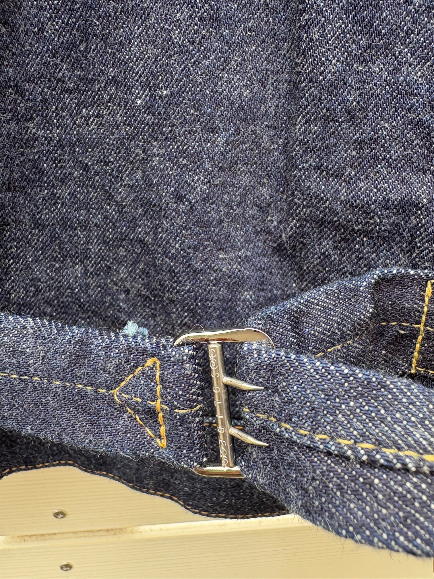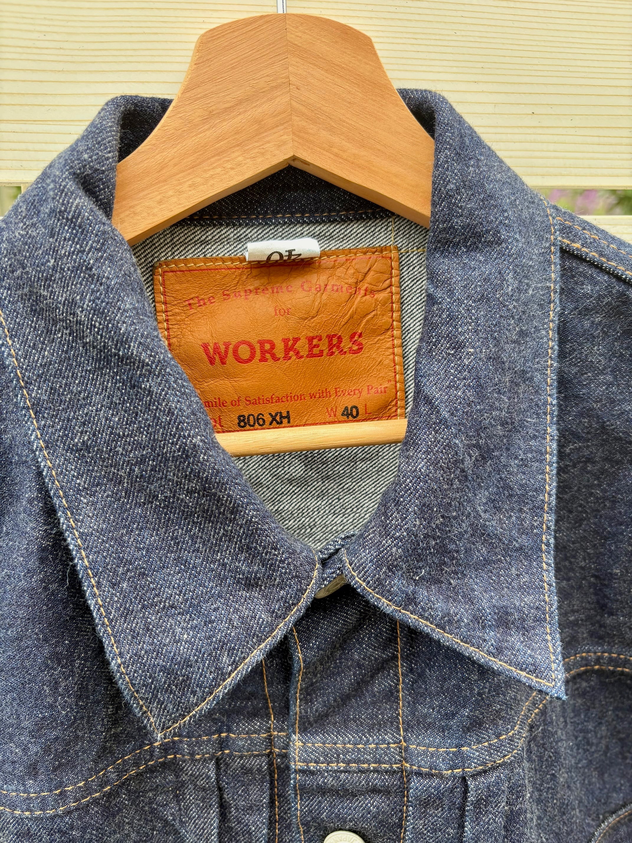 生地、インディゴはXH(エクストラヘビー)。もともと、WORKERS 定番の米綿100、ワタから別注のデニム生地がタ
