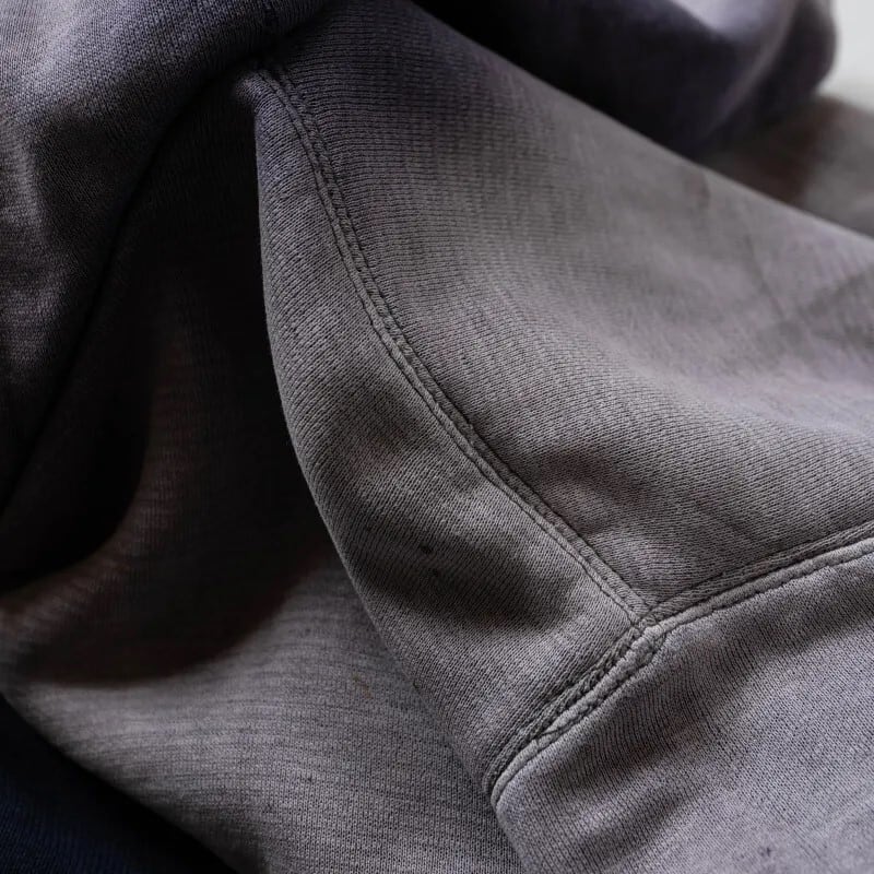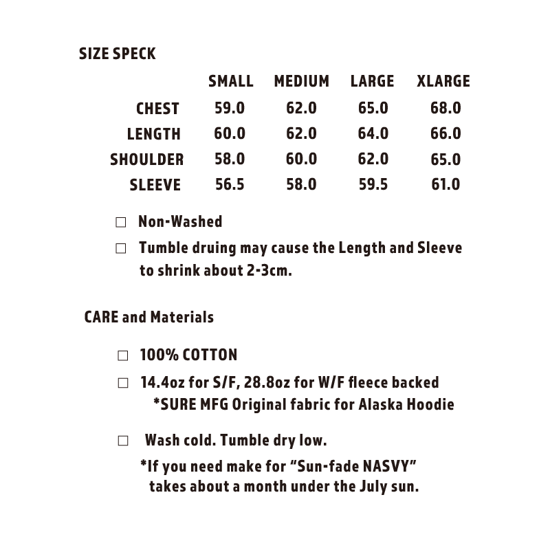 カラーについては、最初からフェードした感じに作るのはなんか違う気がしてて、染工所で聞いた 日光で青が抜けて赤が残るネイビー を採用しています。アラスカフーディーは、言ってしまえばアフターフーディーのレプリカです。でも僕たちが再現したいのは、ディテールだけじゃなくて、SUREがビンテージみたいに、誰かのお気に入りになって、ヨレヨレになって、ゾンビになって…それでも大好きだ。みたいな存在になることです。もし到達できたら…それは「ナイスナスビー」です。