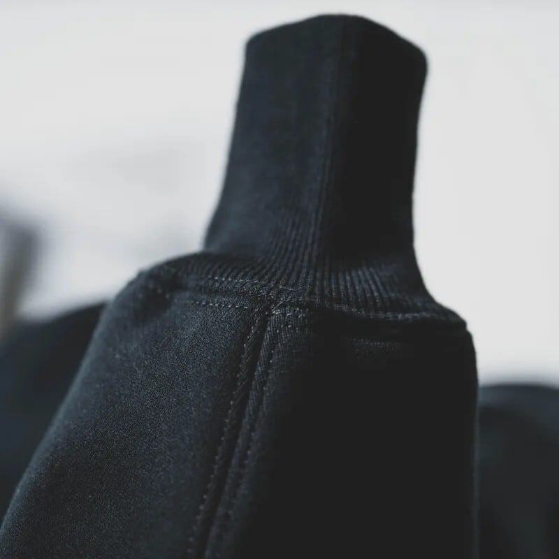 糸から作ったフルオリジナル。今回は糸番手を変更したので、2種類の糸を紡績しました。1本を2本にした本体の糸と、2本を1本にしたリブの糸。これはチャンス!だと思って黒の比率を変えました。念願だったツートーン。 まさに、キングオブフーディー!