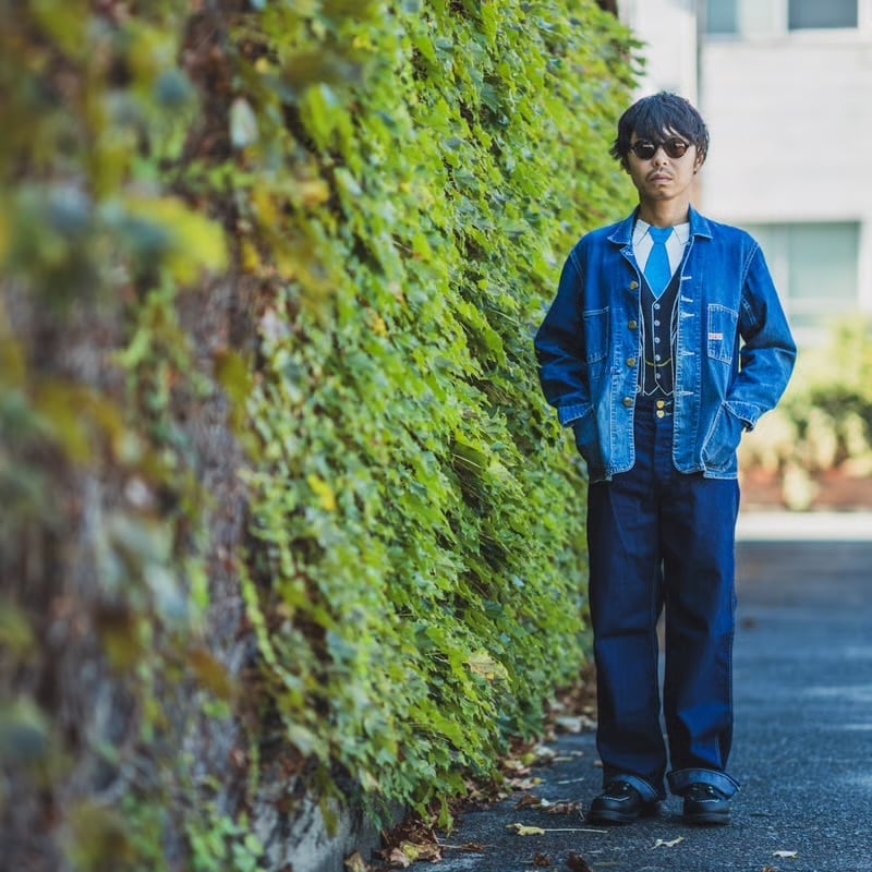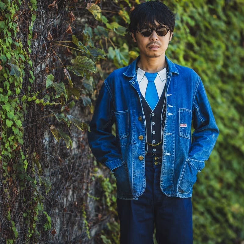 いつもGジャンやジーンズのセットアップは必ず作るのに、カバーオールだけはジャケット単体で作ることが多かったのですが、今回はCatharttシリーズ。Cathartt JKと同じ生地でセットになりますので、ぜひスーツ感覚での着用も試していただけたらと思います。わざとらしくないナチュラルムラの糸の経糸7番に対して緯糸は16番と細く打ち込みの本数も少し下げています。