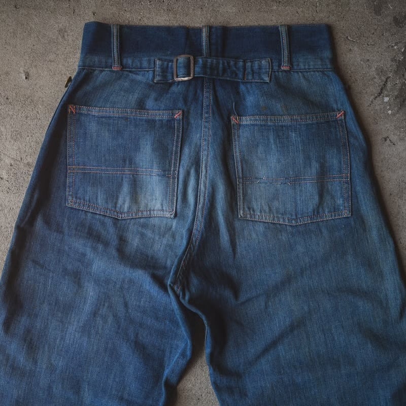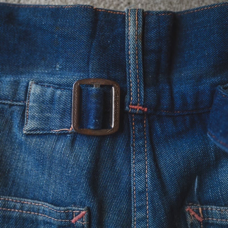 そんな中、ハート型のボタンはチェンジだけでなく打ち込み型でも存在することを後に知りました。今回は、1930年代のCarhartt単色タグのペインターパンツのヴィンテージを参考に制作。通称「Mule Ear Pockets」と呼ばれる、ラバの耳を模したポケット。VintageではCarharttだけでなく、LeeやHeadlightでも見かけるデザインです。