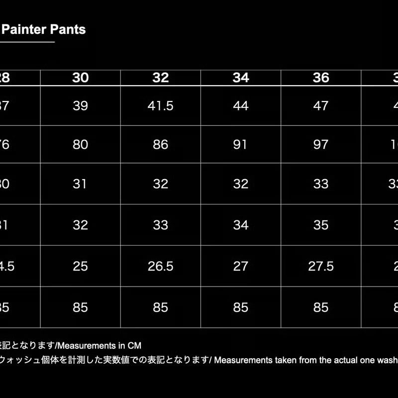 ジーンズより少し作りは大きめですが、ペインターにしてはそこまで股上が深い作りではありません。お持ちのジーンズのウェスト内径を基準にしたサイズ選びをお勧めします。