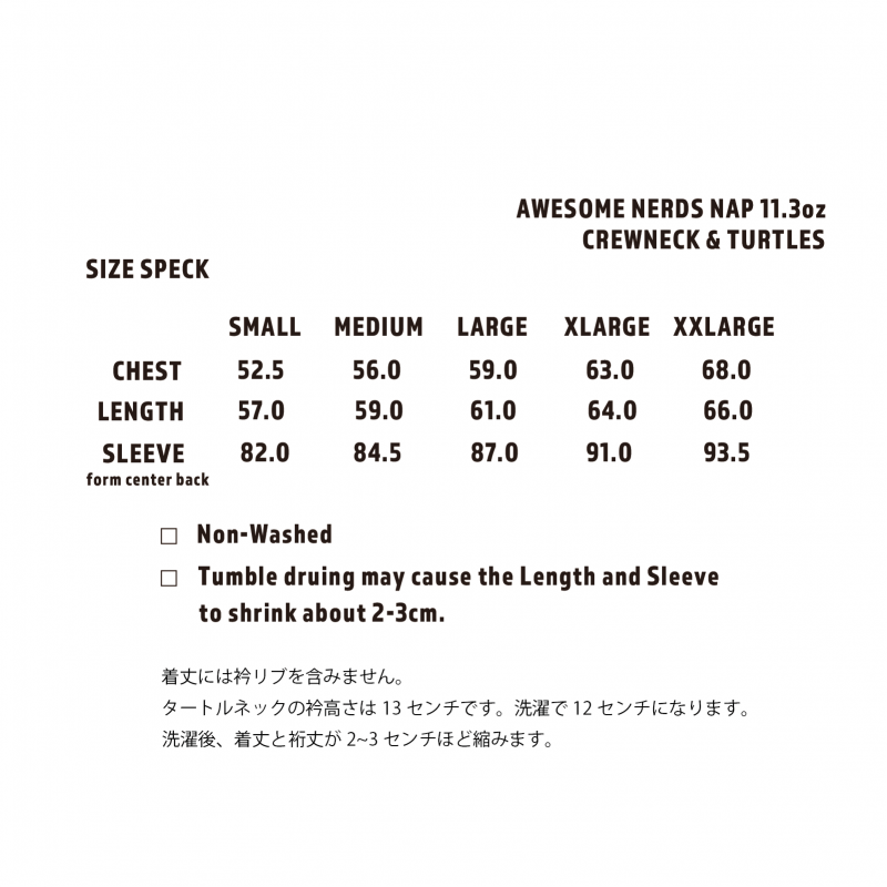 ナスビーのクルーネックがナイスナスビーに変わって、リブがいい感じに死んだ頃、違いが現れる….かどうかは分からないけど。笑とにかく、この生地には、変態的(NERDS)起毛(NAP)というのがピッタリなんだ!