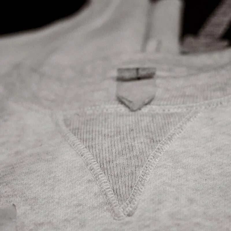 丸胴ボディーの制約の中で、脇下に運動量を。これはアール・デコみたいな発明で、スウェット界隈で最も美しいディーテールです。