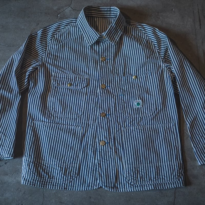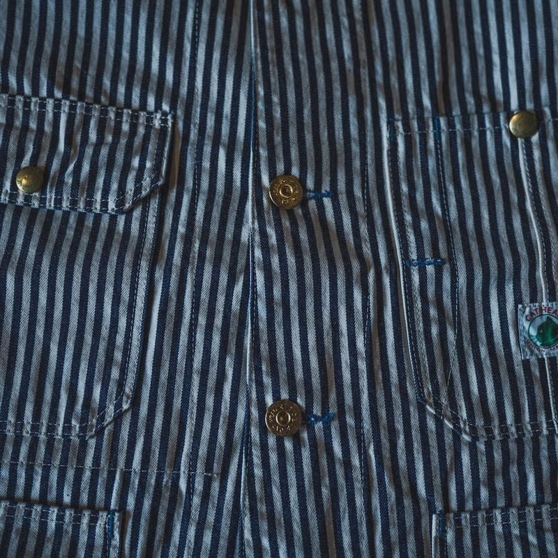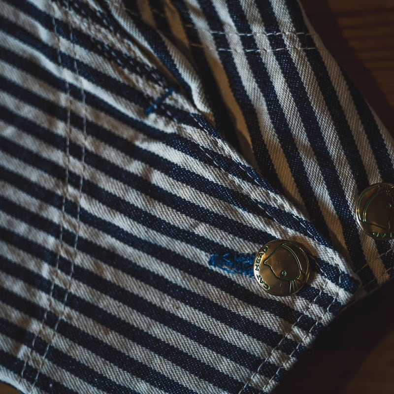 インディゴ×生成りのベーシックなヒッコリーストライプを採用しています。