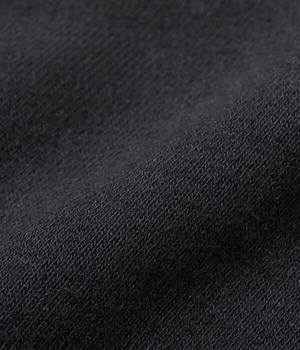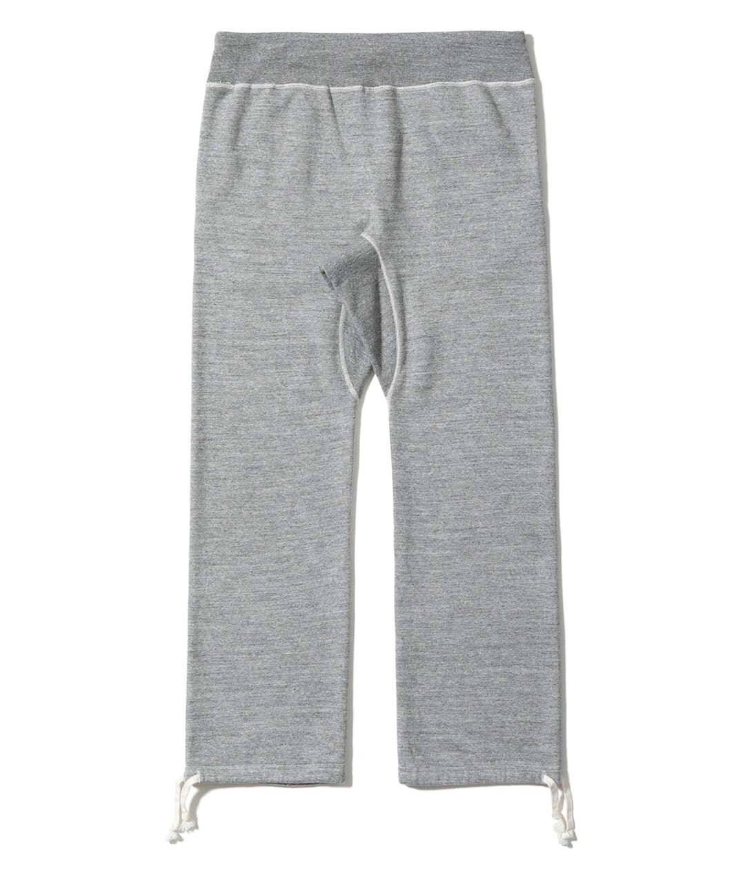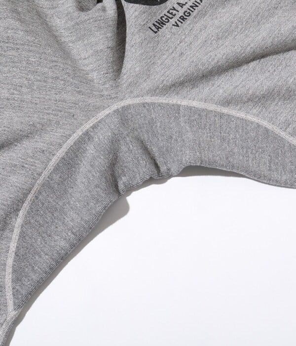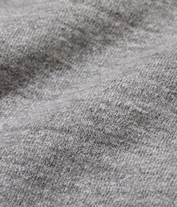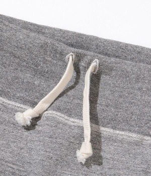 このスウェットパンツはスウェットシャツ同様に丸胴仕様で、内股とポケットを切開してパンツを形成しているためソフトでスムースな履き心地を誇る。本体の生地が縦使いに対して股のパネルは横使いで縦横の伸縮性に優れ、ポケット地は薄手の天竺素材を使用しているため膨らみを押さえ、運動性にも直結する。