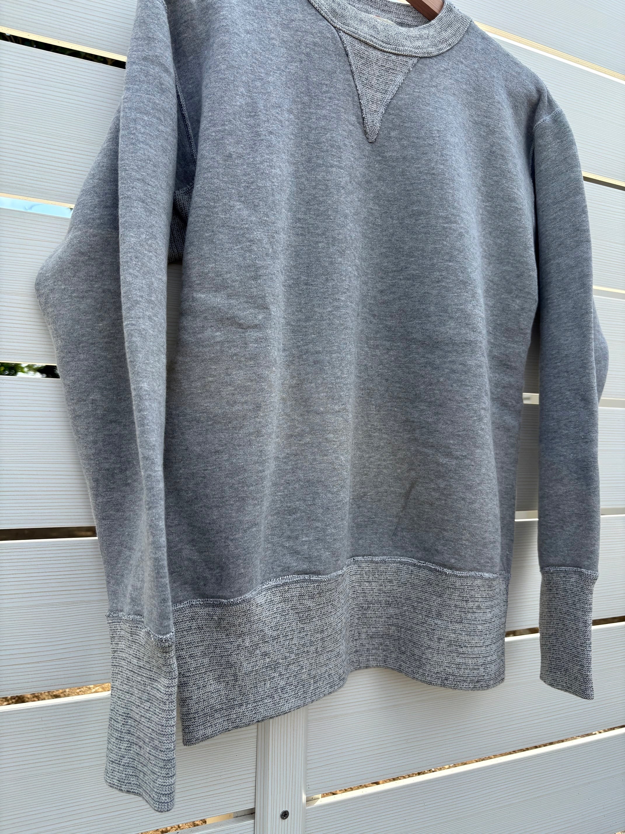 ヴィンテージ・スウェットをそのまま復刻するのではなく、シルエットは現代風にやや細身のシルエットやアームホールでタイトなアウターの下に重ね着してもごろつかずに快適に着ることができ、着丈も非常にバランス良く出来ています。